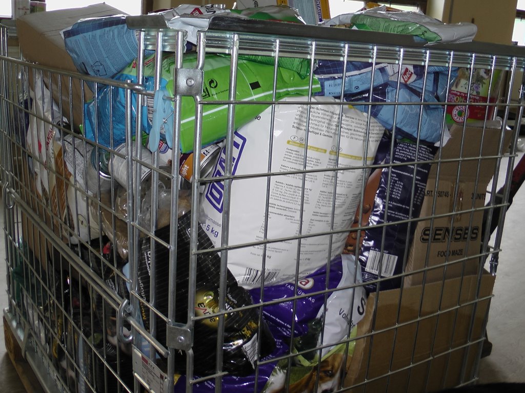 Voller Freude nahm er mehrere gut gefüllte Paletten entgegen. Der Inhalt der ersten Palette ist sofort in den Mäulchen unserer verfressenen Meute verschwunden. Offensichtlich hat es auch gut geschmeckt, denn selbst unsere "Mäkler" hatten nichts auszusetzen.