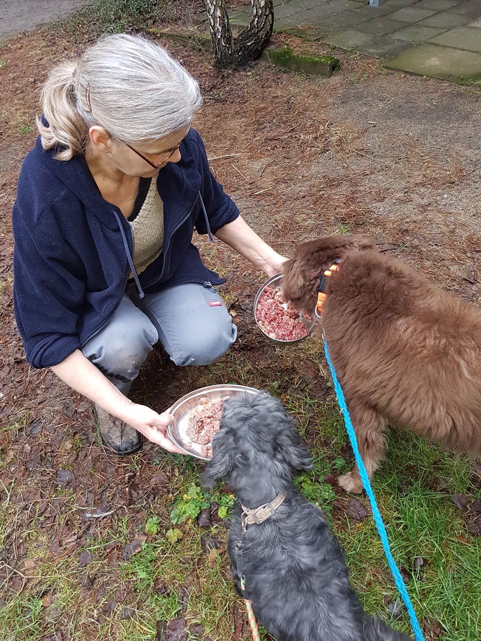 Unsere Oldies und Handicaphunde wie Yupek, Bommel, der blinde Lorenzo und einige andere durften sich über das Festmahl freuen.
