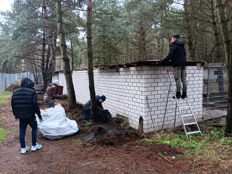 Endlich konnten wir so die Dächer der Hundegehege austauschen. Schon lange ärgerten wir uns über die marode altersschwache Anlage, denn die Hunde standen im Dreck, wenn es durchregnete.