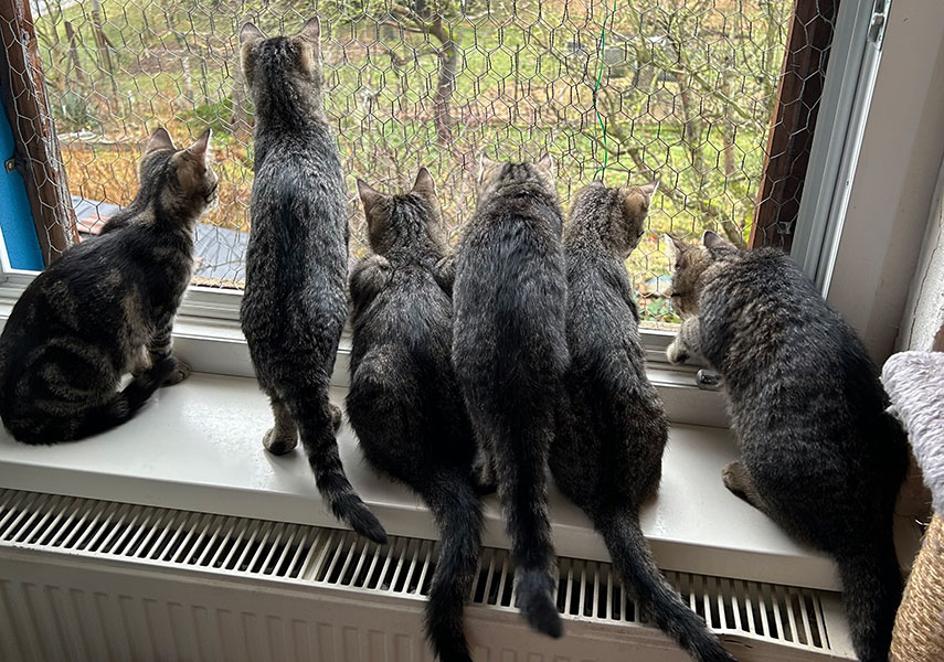 Im Februar werden sie kastriert und dürfen dann bei uns ausziehen. Jedes der Kitten wird mit mindestens einem weiteren Geschwisterchen gemeinsam vermittelt.