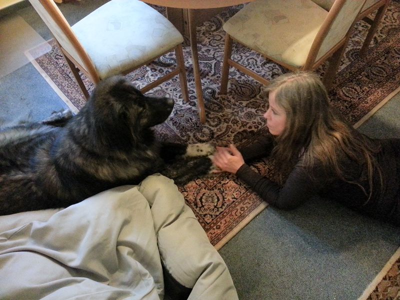 In der Wohnung und im Umgang mit uns war Lilly der liebste Hund, den man sich vorstellen kann. Wäre da nur nicht dieses vermaledeite Treppenhaus! Da Lilly nicht dazu zu bewegen war, das Treppenhaus freiwillig zu benutzen, haben wir die Hilfe eines Hundetherapeuten, mit dem wir auch weiter Kontakt halten, in Anspruch genommen. Und siehe da; wie durch ein Wunder ging Lilly von Stund' an ohne Probleme durch das Treppenhaus, mittlerweile auch ohne Leine und völlig freiwillig.