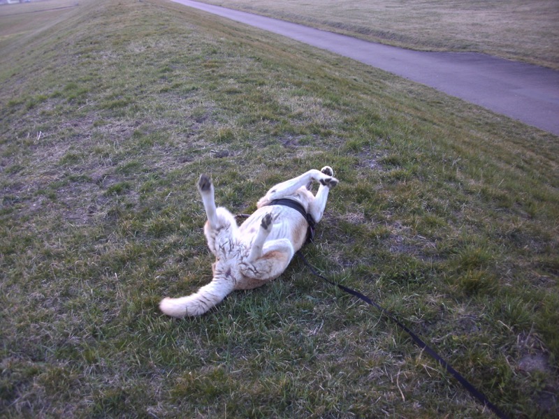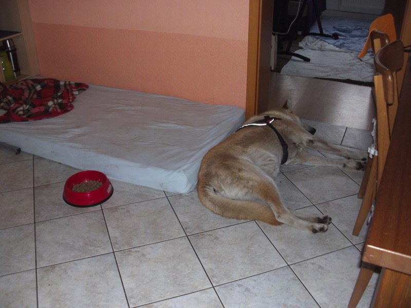 Im strömenden Regen, waren wir heute trotzdem einen langen Spaziergang machen, denn er hatte ja seinen Regenmantel an und dann ab auf die Fußbodenheizung zum Trocknen und anschließend eine Mütze voll Schlaf.