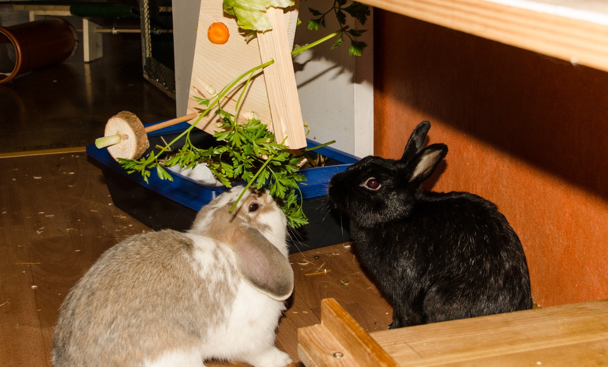 Sie wird sehr oft von Finny heftig gejagt. Manchmal braucht Finny nur in einer ganz bestimmten Art Silva anzuschauen, und schon bringt Silva sich in Sicherheit. Das ist im Kaninchenhaus. Da wird sie dann in Ruhe gelassen.