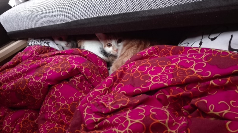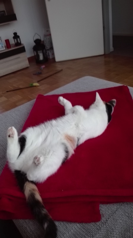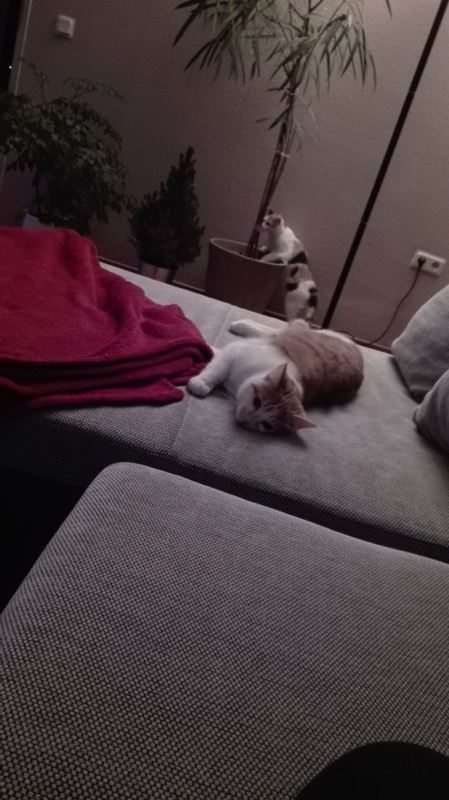 Sunny ist weiterhin recht schmusig und schnurrt bei Streicheleinheiten gemütlich vor sich hin. Luna lässt sich nur über den Rücken streicheln wenn es Futter gibt (was schon ein Fortschritt ist (Anfangs war das gar nicht möglich)), ansonsten heißt die Devise "Don´t touch please". Sie ist aber immer in unserer Nähe und verbringt auch gerne den einen oder anderen Abend mit uns auf der Couch, aber natürlich mit einem gesunden Abstand :)