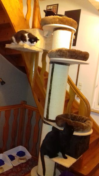 Er hat uns ein super Kratzbaum geschenkt, der sofort erkundet wurde!