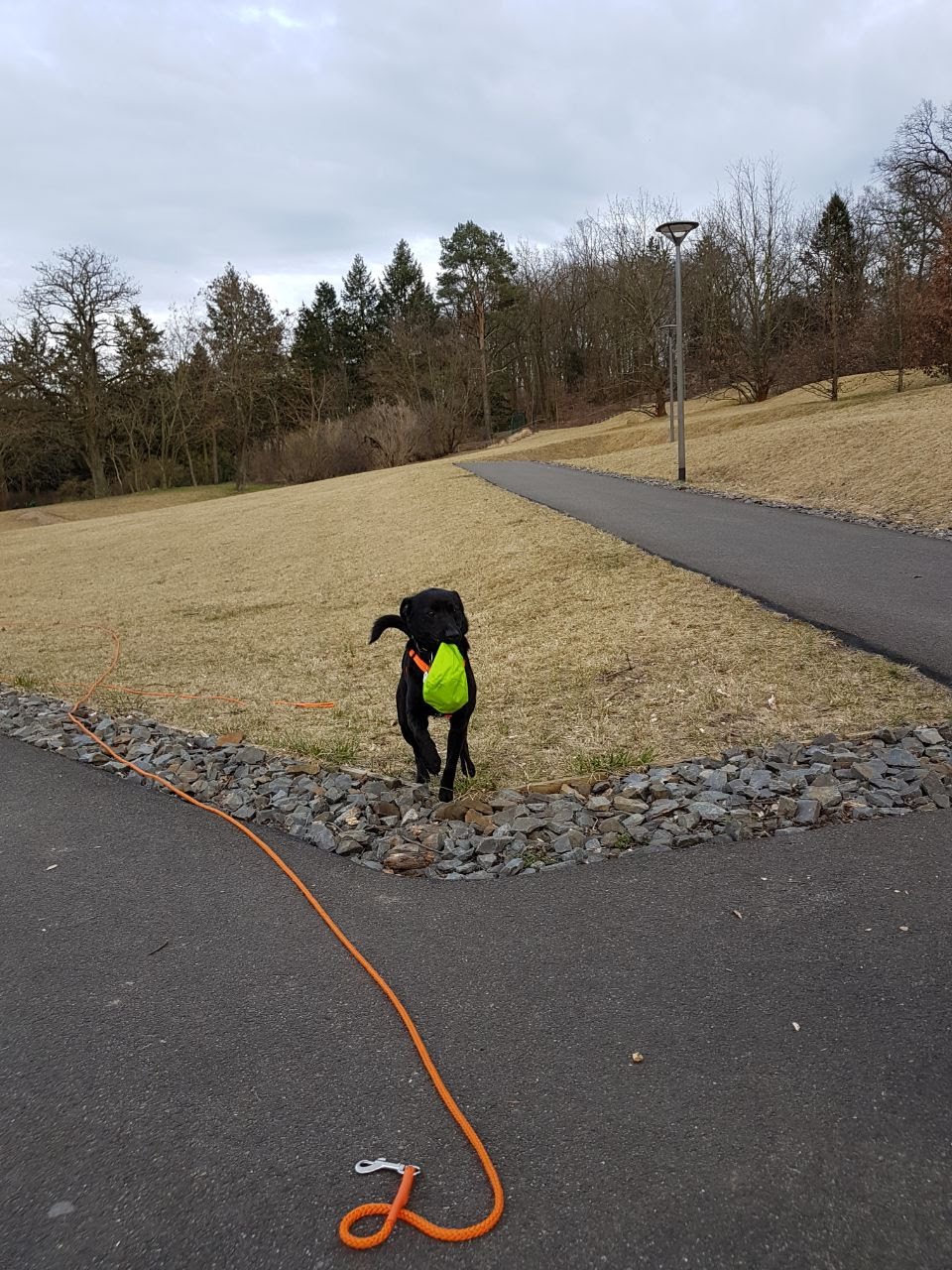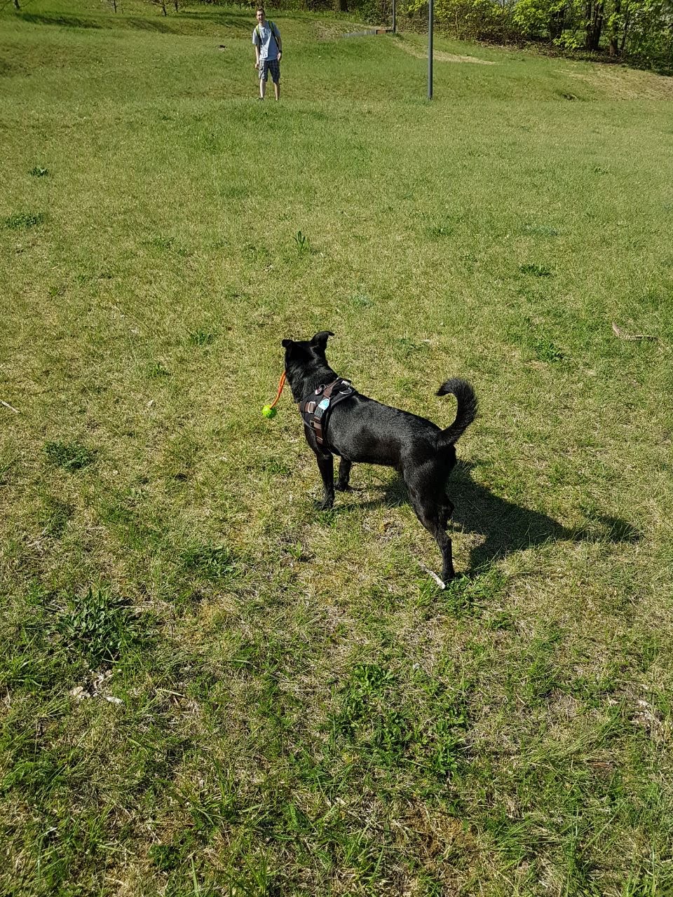 Er spielt mit seinem Ball und bringt uns diesen auch wieder zurück :) Er spielt gerne mit anderen Hunden und fühlt sich bereits wie zuhause. Wir danken euch sehr für diesen tollen Hund und die Freude die er uns macht :)