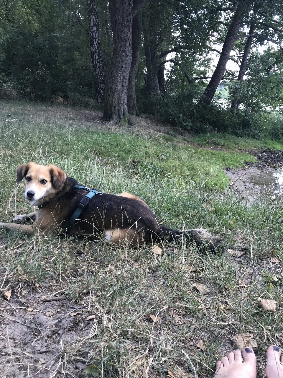 Auch haben wir es geschafft ihr die Vorzüge von Wasser näherzubringen. Mitlerweile geht Sie bereitwillig ins kühle Nass, auch wenn sich die Motivation zum Schwimmen noch in Grenzen hält. Um sie auch sozial weiter zu fördern steht immer Montags für uns ein Treffen mit einer Hundegruppe der Hundeschule an, währenddessen wir einen ausgiebigen und zwanglosen Spaziergang durch die Wälder Wandlitz vornehmen. Auch hier hat sie sich bestens eingelebt und ihren Platz in der Gruppe gefunden. Auch wenn dies zur Folge hat, dass sie sich die ein oder andere Dummheit bei den anderen Hunden abschaut.