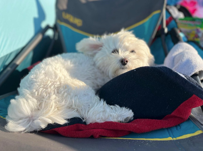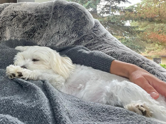 Bärbel war schon beim ersten Spaziergang im Tierheim Verlorenwasser mit solch einer großen Freude und offenen Art unterwegs, dass es sofort zwischen ihr und den anderen vier Familienmitgliedern funkte. Den Weg in ihr neues zu Hause verschlief sie (ausnahmsweise) in Mamas Arm und liebte es von da an zu kuscheln, zu spielen und natürlich zu kuscheln.