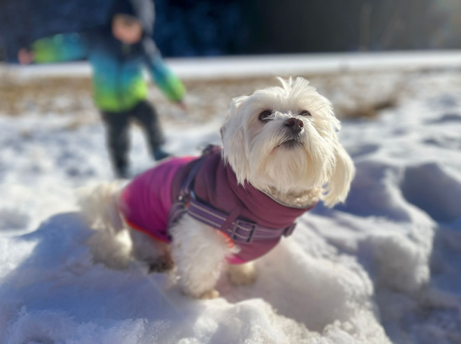 Nach dem ersten Bad und Frisörtermin entpuppte sie sich als kleine, bildhübsche Prinzessin. Sehr ambitioniert hält sie das Rudel zusammen und liebt das Meer, saftige Wiesen oder weißen Pulverschnee.