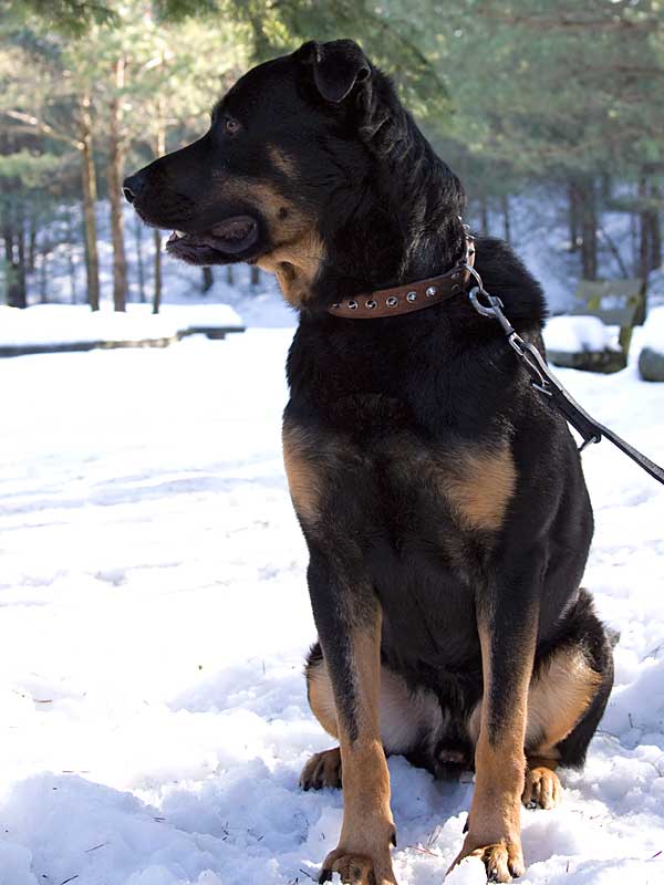 Offensichtlich hatte es der etwa dreijährige Rottweiler-Mix bisher nicht gut getroffen.