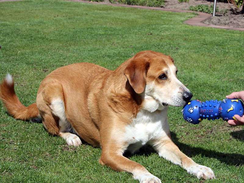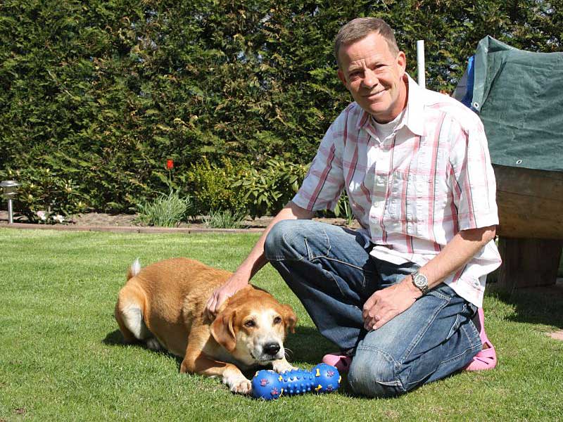 Basko liebt seinen Spielknochen über alles, vor allem wenn er mit Herrchen gemeinsam toben kann.