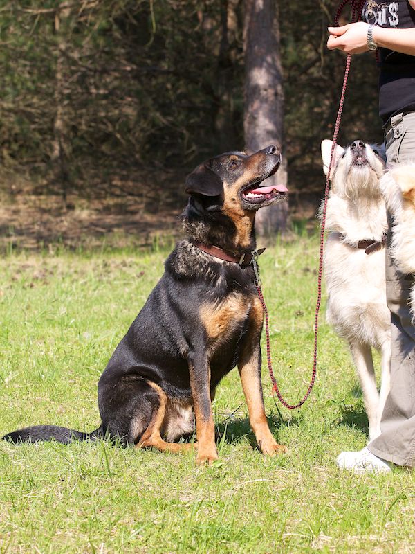 Er lebte bei uns mit Trevor gemeinsam in einem Zwinger. Da Trevor etwas unsicherer war als Spencer, konnte er bei dem ausgeglichenen Spencer gut Halt finden.