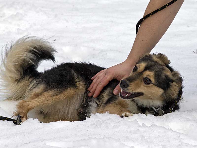 Franzi wurde einen Tag vor Weihnachten bei uns abgegeben. In der Familie ging es ihr monatelang sehr gut, doch von einem Tag zum anderen wurde sie auf einen Schlag unsauber und zog sich verängstigt zurück. Über die Ursache konnte uns die Familie nichts sagen. Vor allem mit den drei kleinen Kindern schien Franzi überfordert zu sein.