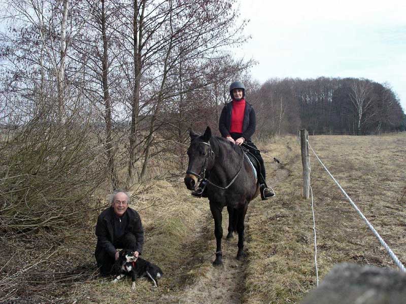 heute haben wir einen ersten Frühlingsausritt gemacht ! Das heißt, ich bin mit Herrchen immer vorne weg, Frauchen auf "Bria" hinterher. Das macht echt Laune !