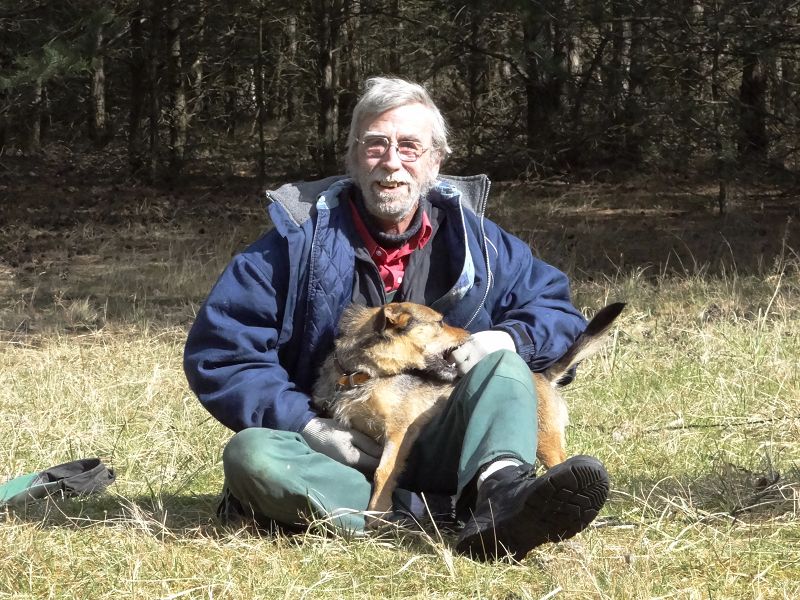 Er hat einen enormen Jagdtrieb. Seine Nase ist nur unten auf dem Boden, wo er nach Fährten sucht.