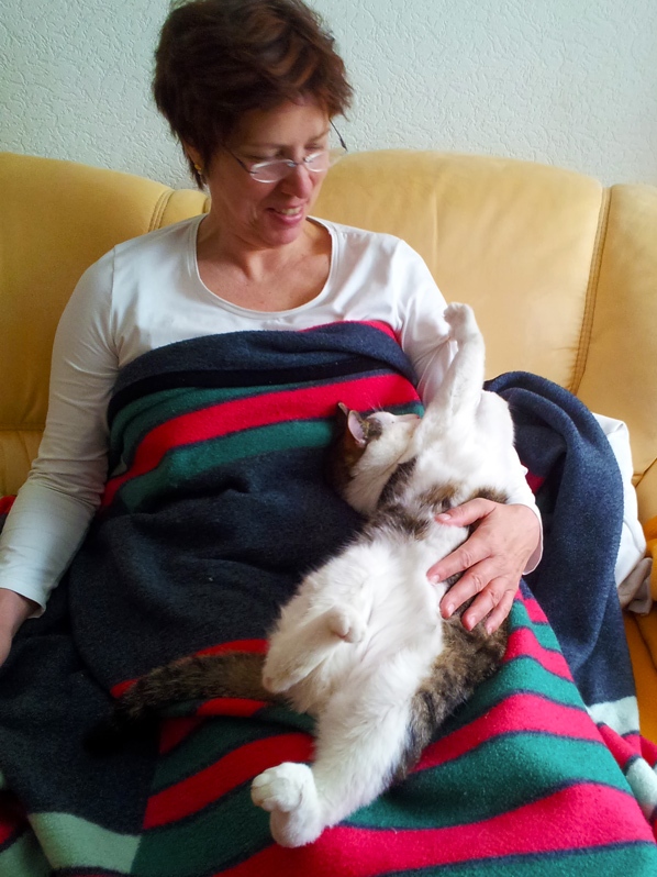 Danach war das große Schmusen angesagt und man hatte den Eindruck, Harry wohnt hier schon seit 10 Jahren, er hat es sich gleich auf dem Sofa gemütlich gemacht und innerhalb der kürzesten Zeit die gemütlichsten Ecken gefunden und in seinen Besitz genommen ;-)
