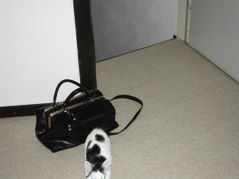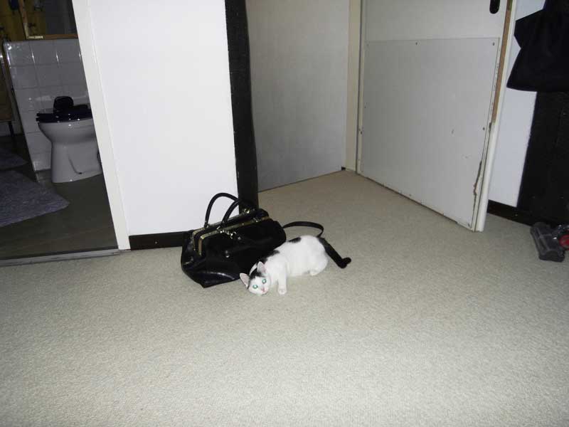 Zu Hause angekommen wurde sie zwar interessiert und freudig von unserer ersten Katze Sammy begrüßt, aber Emma (so haben wir sie jetzt genannt, weil Okita ja nun wirklich kein Name für eine Katze ist ...) hat sich erst einmal volle acht Tage zurückgezogen und uns misstrauisch beäugt. Aber gefressen und gesch... hat sie gleich von Anfang an.