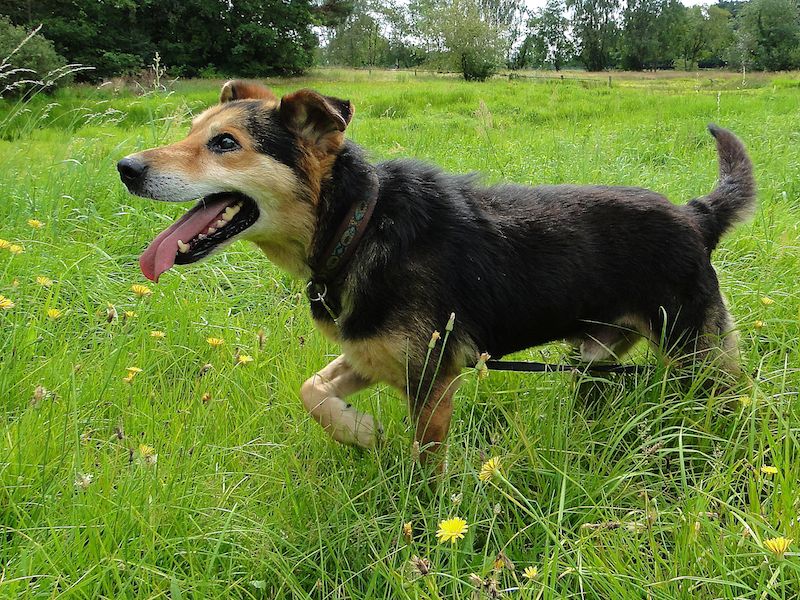 Wir waren mehr als glücklich, als eine sehr freundliche Dame Kibo als Zweithund zu sich nahm. Dort hat Kibo einen eigenen Garten, den er ganz selbständig begehen kann. Inzwischen erweitert er täglich sein Revier und dehnt seine Spaziergänge mit Frauchen und seinem Kumpelhund immer weiter aus und erkundet den Wald in der Umgebung. Dabei passt sein Adoptivbruder ganz hervorragend auf ihn auf.