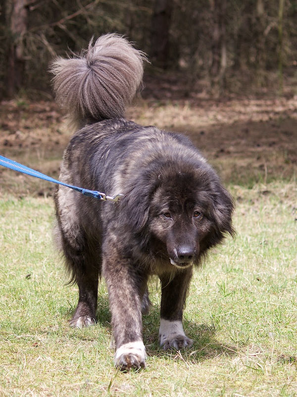 Lilly ist eine beeindruckend hübsche Hündin. Ihre Vorfahren mischen sich aus Kaukasen und Leonbergern.