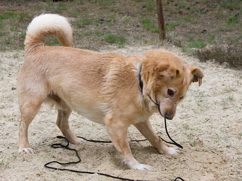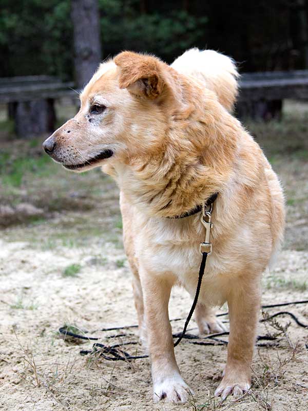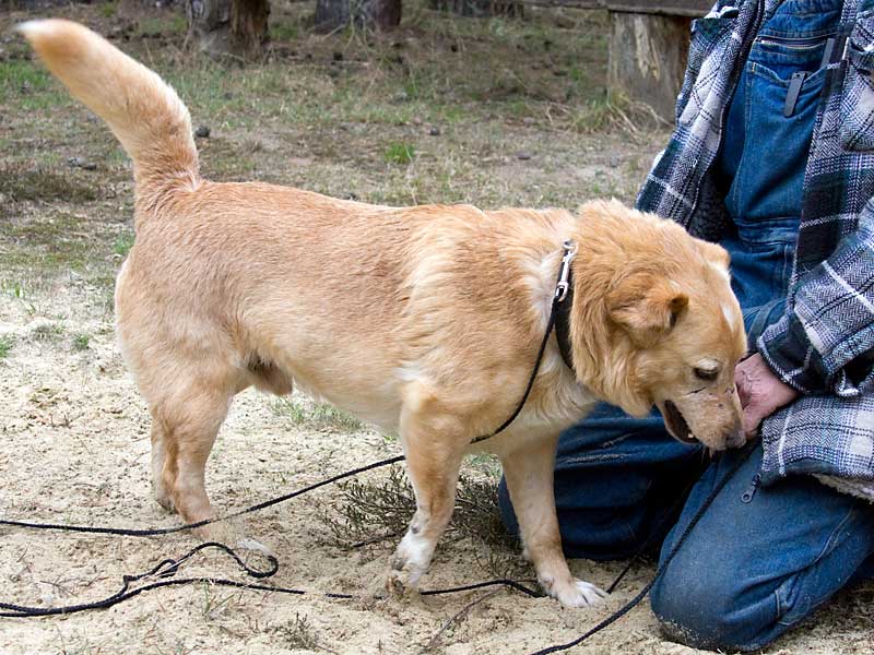 Als er zu uns kam, hatte er Probleme mit einem Vorderbeinchen und humpelte: das Ellbogengelenk war ausgehakt. Die Operation, die wir in einer Spezialpraxis durchführen ließen, brachte leider nicht den gewünschten Erfolg. London schien immer noch Schmerzen zu haben, so dass wir leider an eine Amputation des Beines denken mussten. Doch vorher wollten wir noch Physiotherapie ausprobieren.