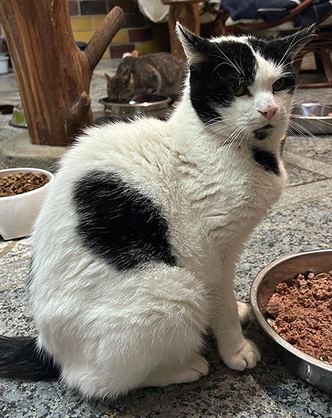 Er hat immer mit anderen Katzen zusammengelebt, aber bei uns ist er eher für sich und allein unterwegs.