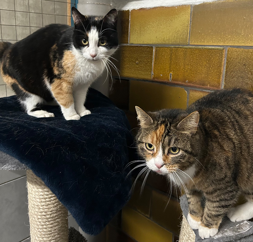 1 katzen aus tierheim brandenburgSophie ist die dunklere, dreifarbige Katze. Sie wurde ca. 2022 geboren.