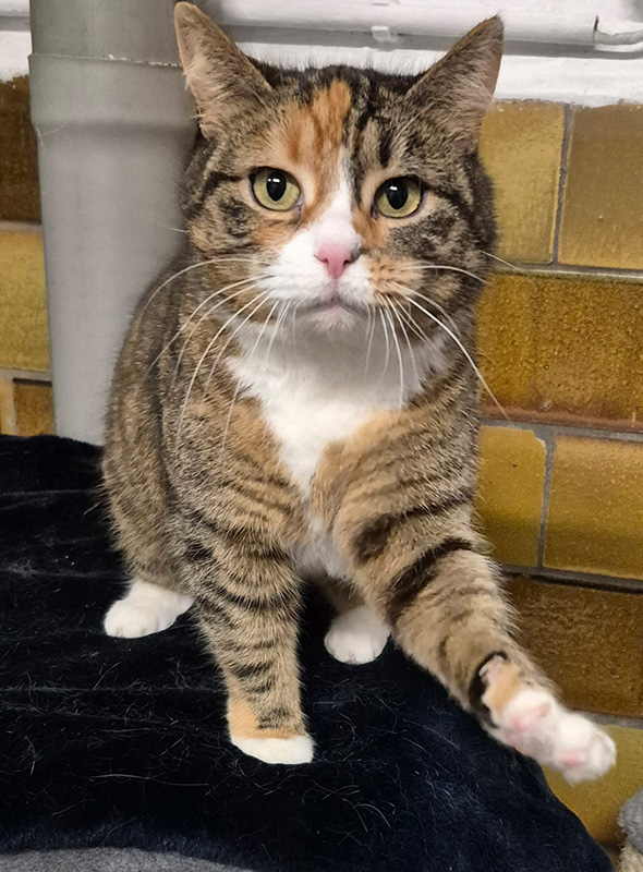 Elisabeth - sie ist die getigerte Katze - wurde ebenfalls ca. 2022 geboren.
