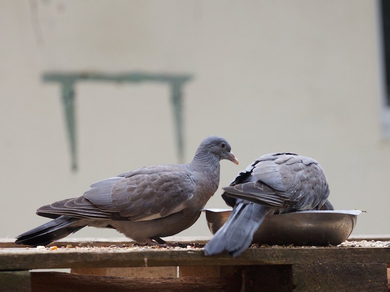Als wir die beiden aus dem Nest gefallenen Täubchen vor ein paar Wochen aus Bad Belzig aufnahmen, hatten wir Sorge, sie durchzubekommen. Doch mit etwas Wärme und viel gutem Futter päppelten wir sie recht schnell groß. Dann wollten wir sie auswildern. Sie haben sich auch schon auf unserem Gelände umgesehen, doch kehren sie immer zu ihrer Voliere zurück.