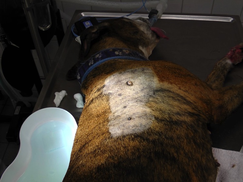 Und damit es den Ärzten nicht langweilig wird, den ganzen Tag nur Katzen zu kastrieren, durften wir noch zwei Sonderfälle mitbringen. Ein Hund mit Zahnfehlstellungen wurde behandelt und Boxer-Hündin Lisa hatte etliche Probleme und erwies sich als "Großbaustelle".