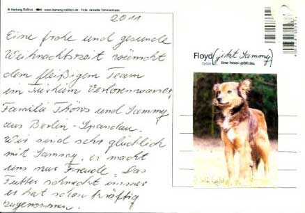 Auch an Sammy und Familie Th. aus Berlin-Spandau geht unser ganz großer Dank für die Geschenke und das Denken an uns.