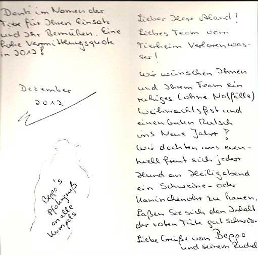 Beppo wohnte früher in unserem Tierheim. Dieser Tage schaute er vorbei und ließ Herrchen und Frauchen tüchtig schleppen, denn sie brachten nicht nur den Beutel Plüschtiere auf dem Foto mit, sondern auch reichlich Futter und zusätzlich eine Futter-Spende von der Karthäuser-Mühle. Also auch nach Falkensee unsere herzlichsten Grüße und vielen, vielen Dank!!!