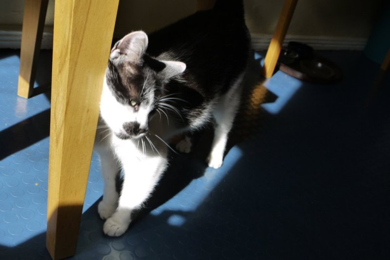 Mein Bett hat er in der dritten Nacht beschlagnahmt, die Nachbarwohnung wird inzwischen regelmäßig kontrolliert und wenn er Hunger hat, wird an der Kühlschranktür gekratzt oder auch gerne versucht, etwas vom Teller oder sonst wo zu stehlen. Ein richtig frecher und liebenswerter Kater eben.