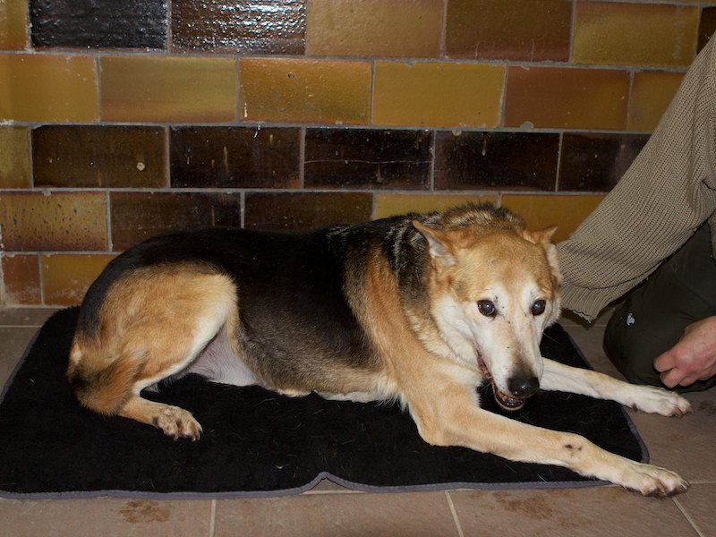 Die dritte Decke war für Joy Brown bestimmt. Er kann die weiche Kuschelunterlage auch gut gebrauchen, denn wir mussten ihn operieren lassen. Das arme Kerlchen hatte Blasensteine - eine sehr schmerzhafte und nicht ungefährliche Angelegenheit.