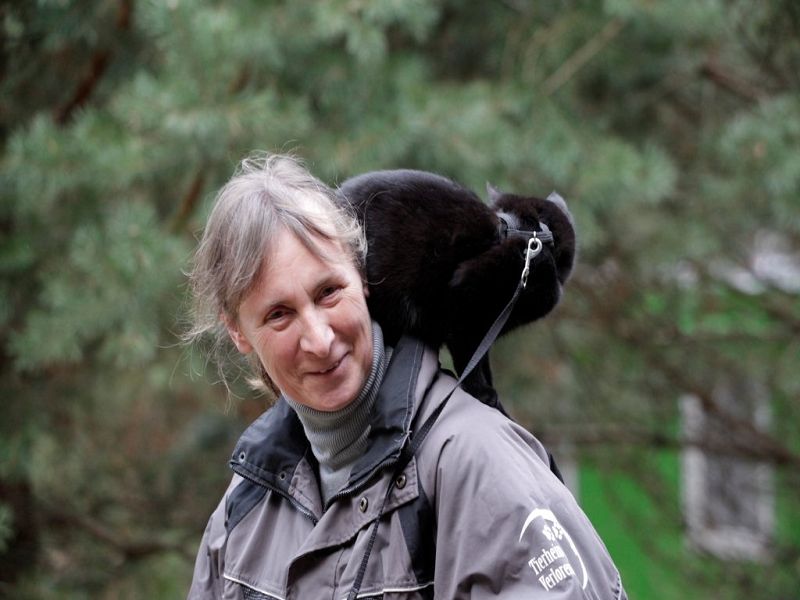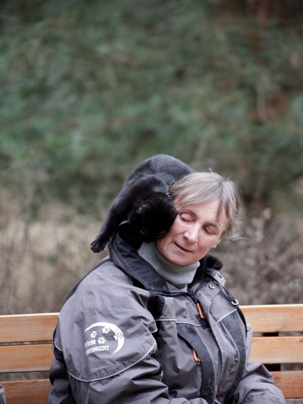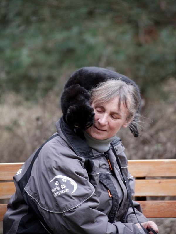 Sie nutzte die Dreharbeiten zu einer ausführlichen Schmusestunde mit unseren Tierpflegerinnen Gabi und Katrin.