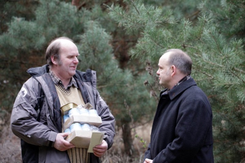 Mit großer Freude nahm Tierheimleiter Wolfgang Aland rechtzeitig zum Weihnachtsfest eine schöne Futterspende aus den Händen des Kino-Chefs Andreas Söhnge entgegen. Und: einen Umschlag - gefüllt mit dem Innenleben der dicken Berta - dem Sparschwein, das im Hofgarten-Kino das ganze Jahr über fleißig Spenden gesammelt hat und jetzt geleert wurde.