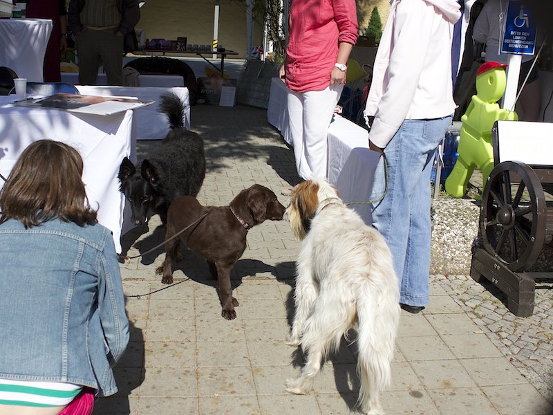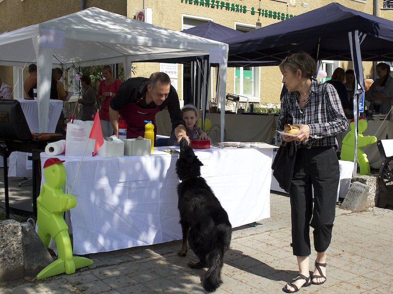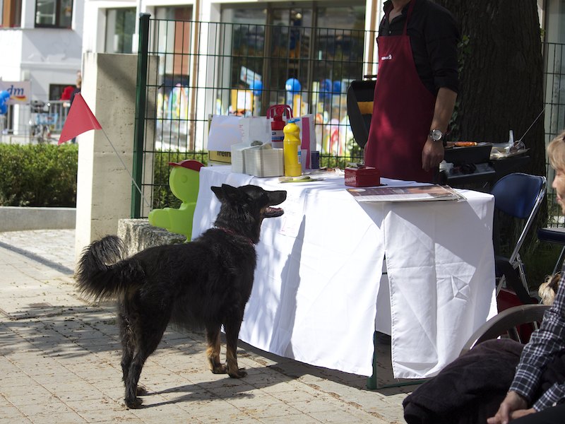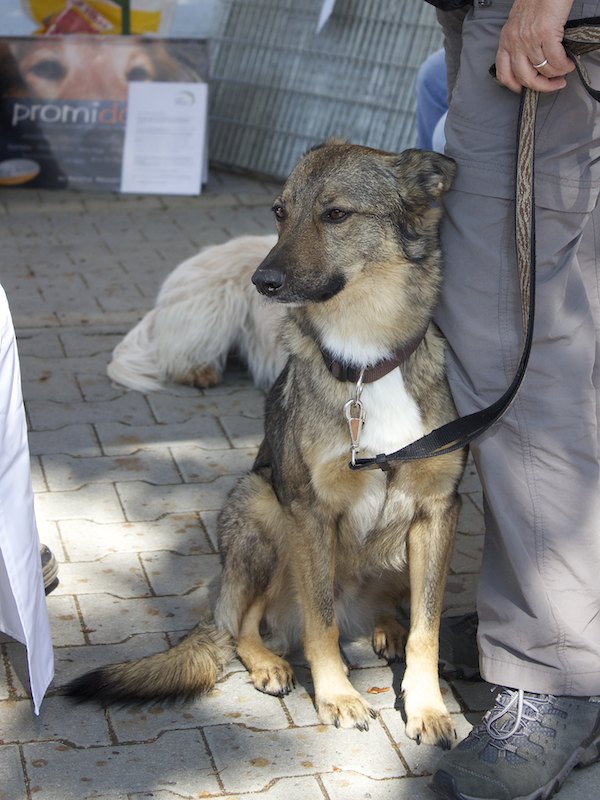 In der Breisgauer Straße 7 befinden sich ein Tierbedarfsverkauf und eine Tierarztpraxis. Sie veranstalteten ein kleines Straßenfest und erlaubten uns, unser Tierheim auf einem Infostand vorzustellen. Wir freuten uns, sogar einige Ehemalige von uns wiederzutreffen. Mariella ist unternehmungslustig wie eh und je, wie uns ihr Frauchen vorführte. Auch Nori konnten wir entdecken.