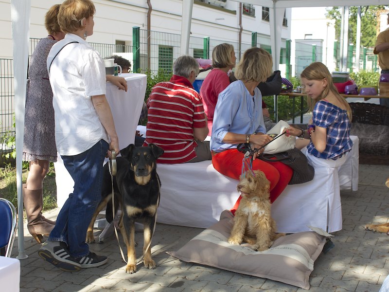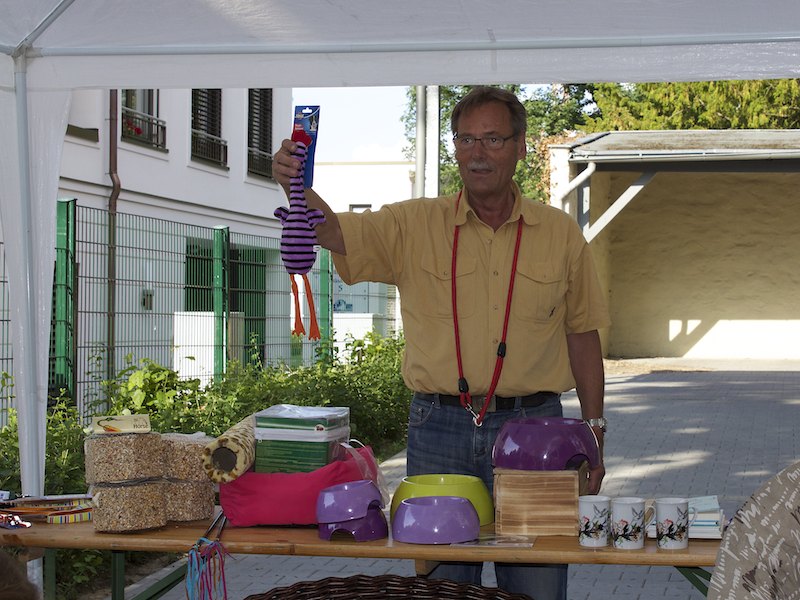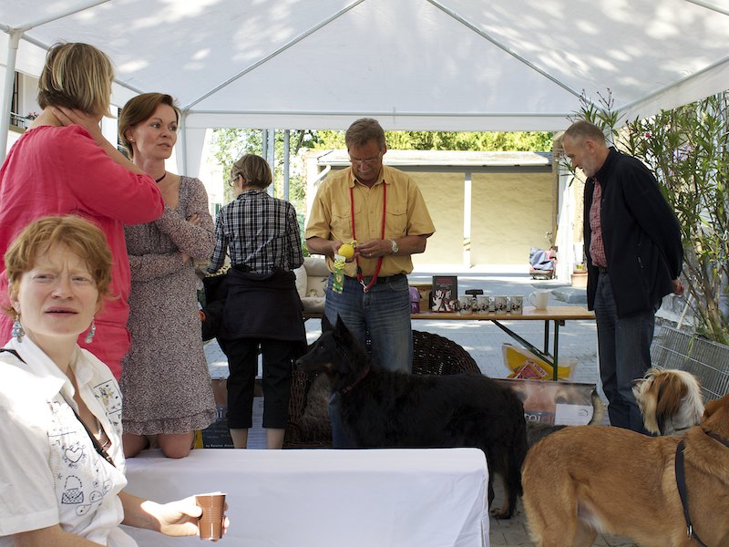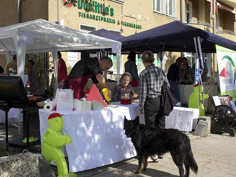 Besonders eifrig war unser kleiner grauer Schnauzer Herr Lehmann. Gemeinsam mit seinem Herrchen leitete er eine Auktion zugunsten unseres Tierheimes. Doolittle's hatte wunderschöne Preise dafür gestiftet sowie einen Kuchenbasar organisiert. So konnte unser Tierheimleiter mit einem dicken Umschlag ins Tierheim zurückkehren.