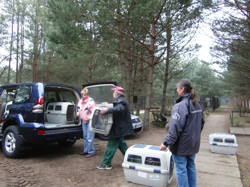 Nach 18 Uhr war dann endlich alles geschafft und es ging wieder zurück nach Verlorenwasser, wo alle gegen 20 Uhr eintrafen. Dort warteten noch die anderen Tierpfleger: Ausladen, Allgemeinzustand und Verbände kontrollieren, vorsichtig Wasser geben, trösten und kuscheln.