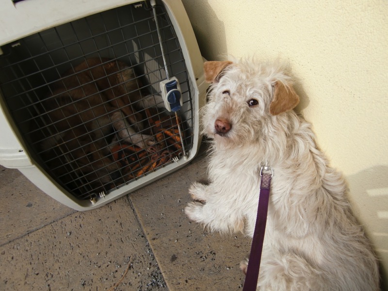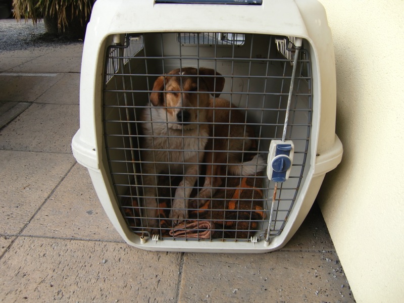 Morgens um 6 wurden die Tiere vorbereitet. Nicht jeder hatte Freude daran. Ulla versuchte noch einmal zu entwischen - und auch Ferris und Miro waren wenig angetan von der Box. Aber es half ja nun mal nichts.