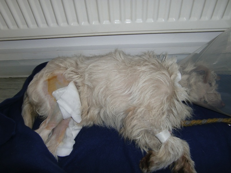 Miro hatte in zwei Beinen Kniescheibenverletzungen, die gerichtet wurden. Bei Poul musste eine Zehe amputiert werden. Bei Dancer musste ebenfalls die Kniescheibe operiert werden. Ulla erhielt eine Oberschenkelhalskopfresektion. Und bei Ferris musste - wie einige Monate zuvor bei Felipa - die angeborene Fehlstellung des Vorderbeinchens komplett neu gerichtet werden.