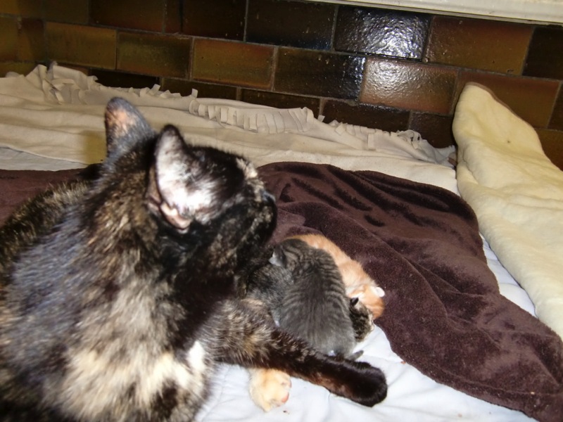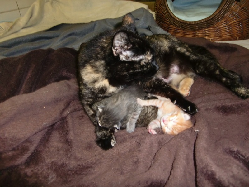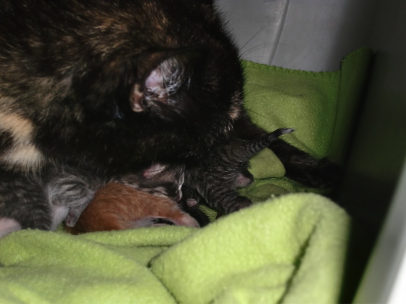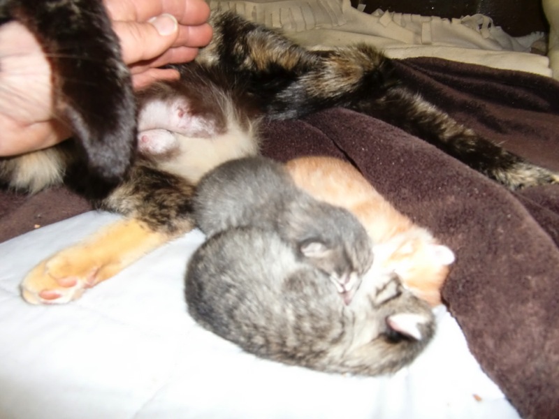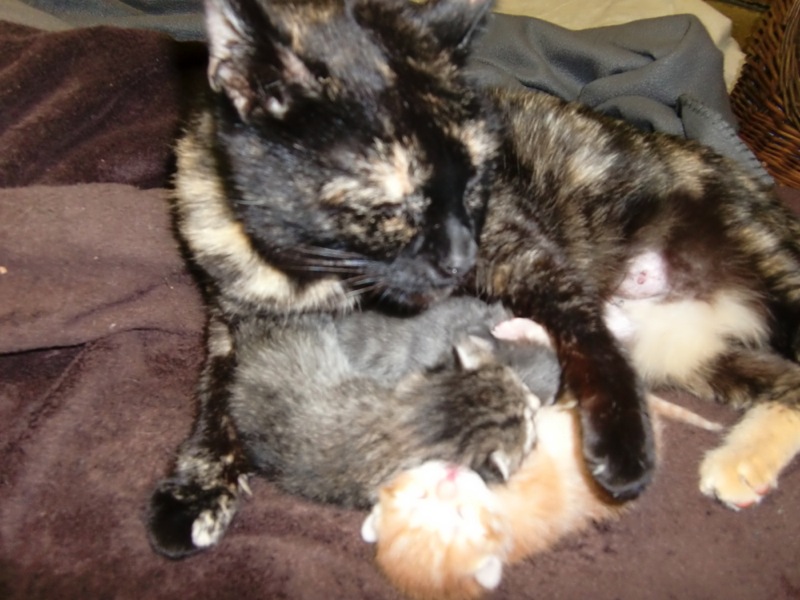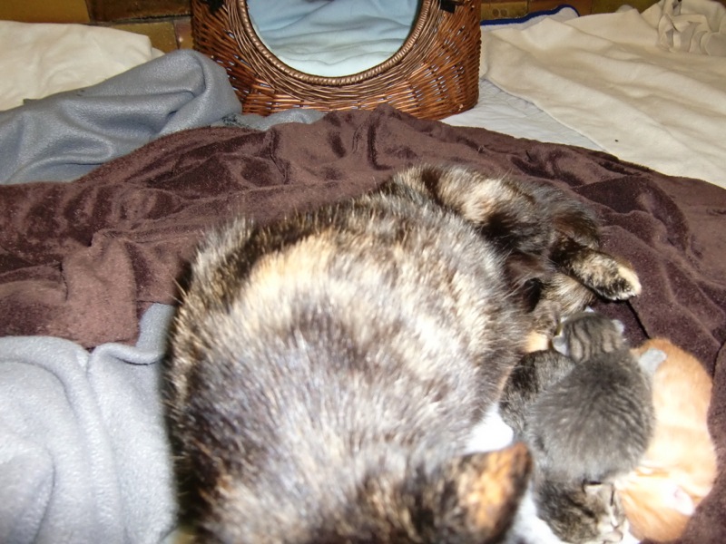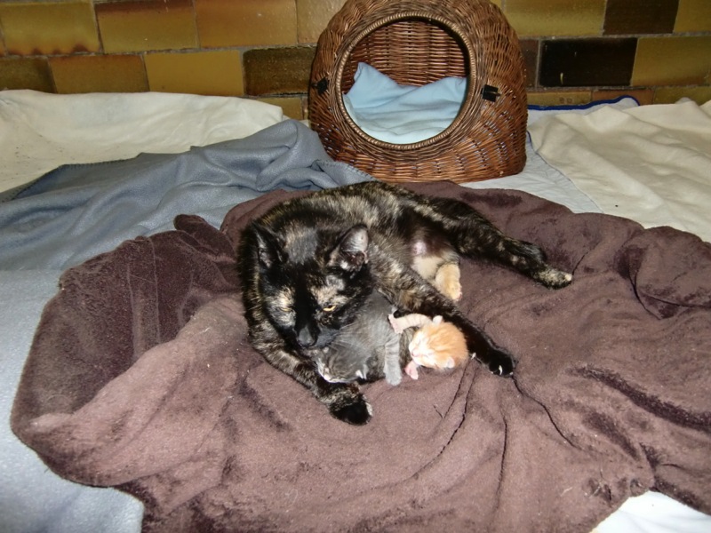 Inzwischen sind Mutter und Kitten wohlauf, wie man sehen kann.