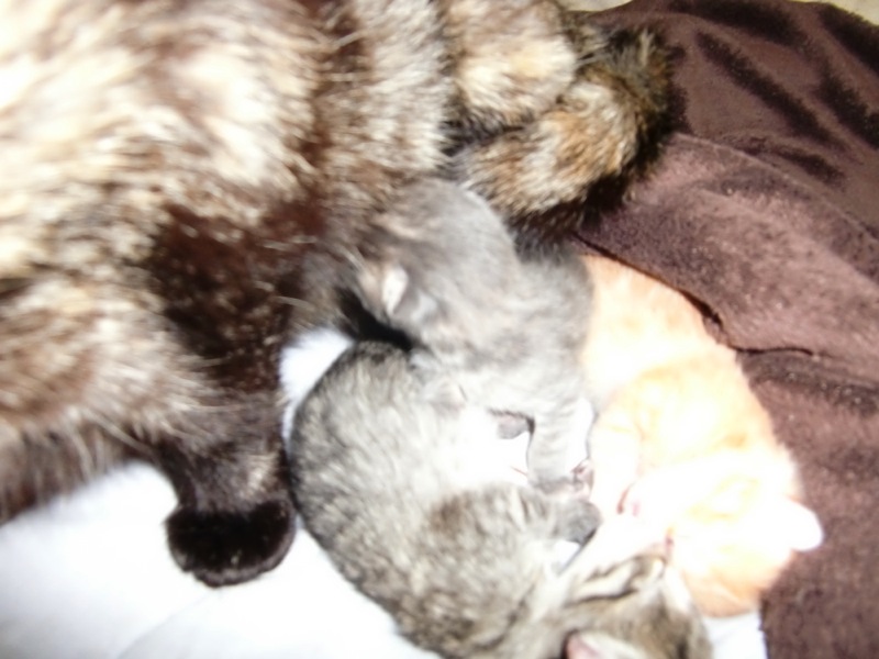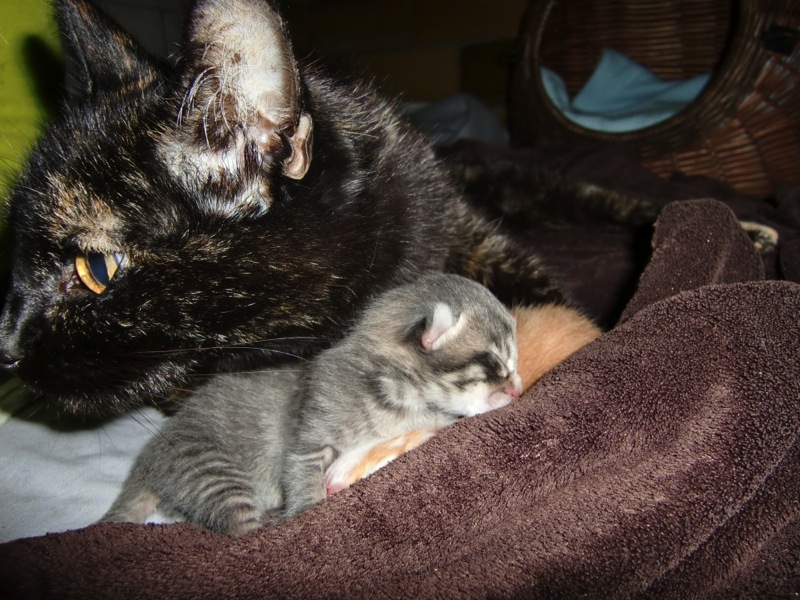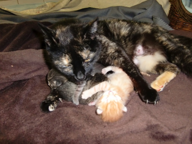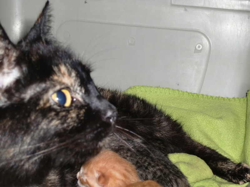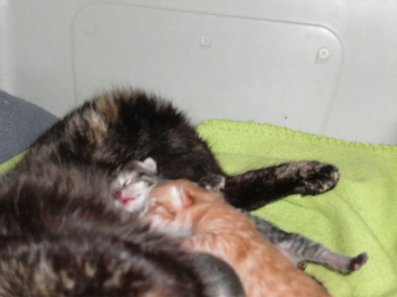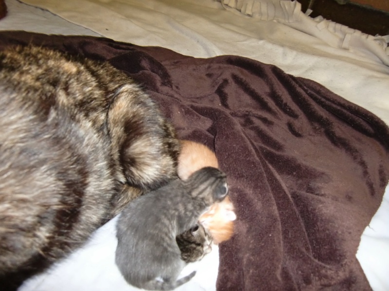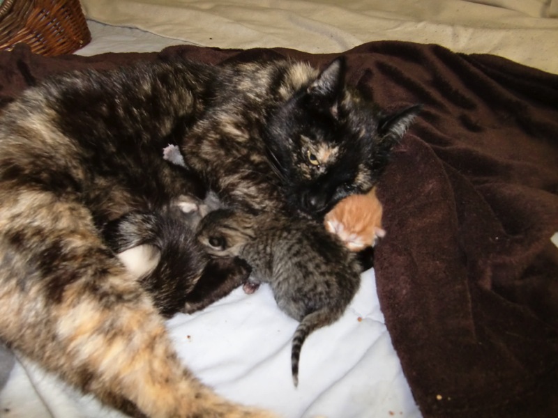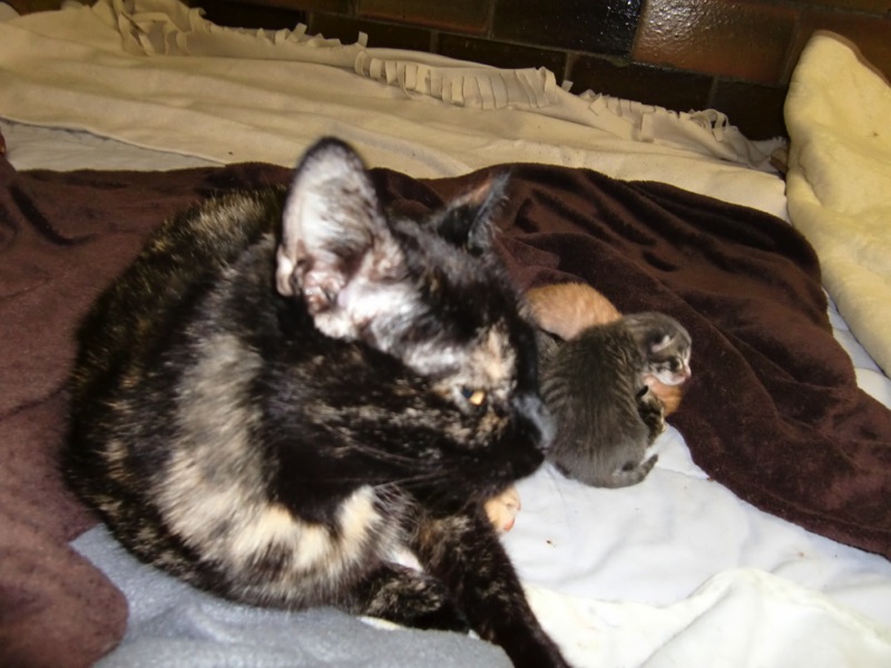 Inzwischen sind Mutter und Kitten wohlauf, wie man sehen kann.