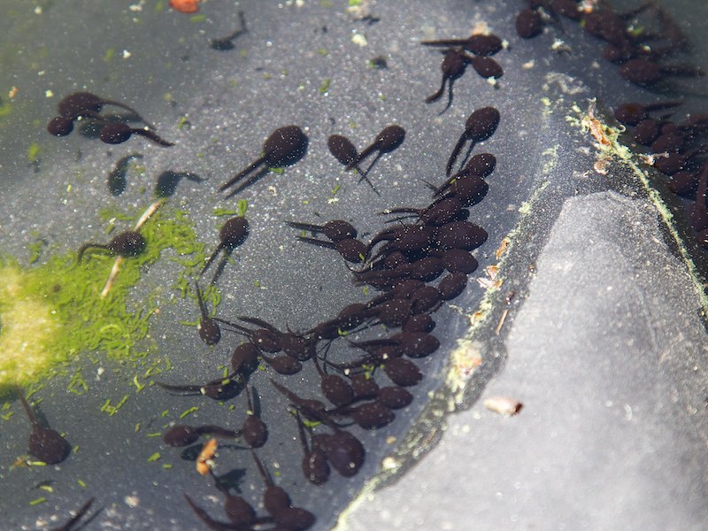 Hunderte von Kaulquappen schwimmen z.Zt. im Wasser umher. Wir werden ihnen die nötige Ruhe gönnen und hoffen, dass möglichst viele überleben werden.