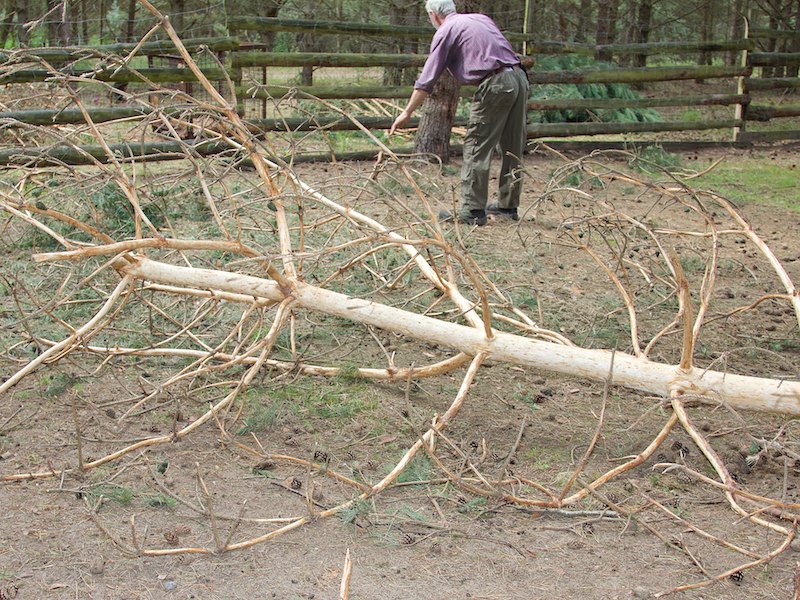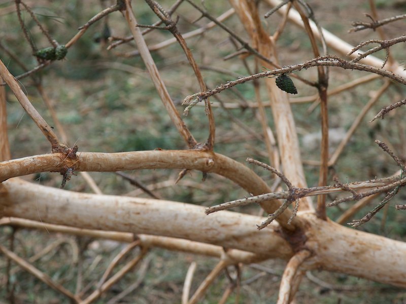 Und so sieht die Kiefernspitze nach nur wenigen Tagen aus. Unsere Ziegen haben sie völlig nackig gemacht.