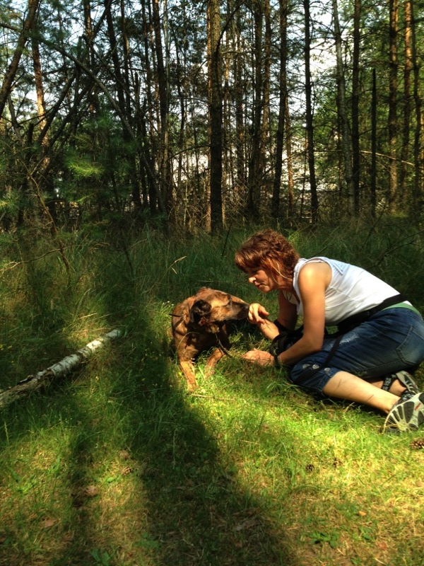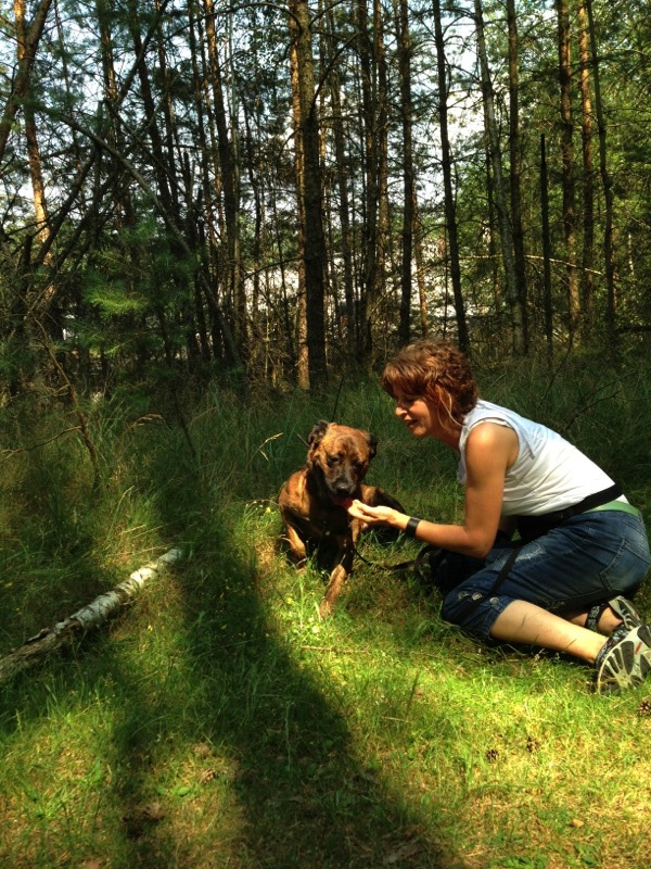 Insbesondere arbeitet sie mit den ängstlichen Hunden. Auch dank Simones Hilfe sind z.B. Bikos und Bonni viel aufgeschlossener und offener geworden, als sie es bei ihrer Aufnahme im Tierheim anfangs waren.