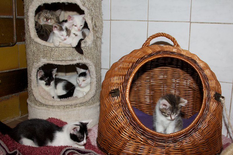 Die Lieblingsplätze unserer Nachwuchs-Samtpfoten sind zwar immer noch die Kuschelhöhlen, aber sie interessieren sich nun auch zunehmend für die Welt da draußen.