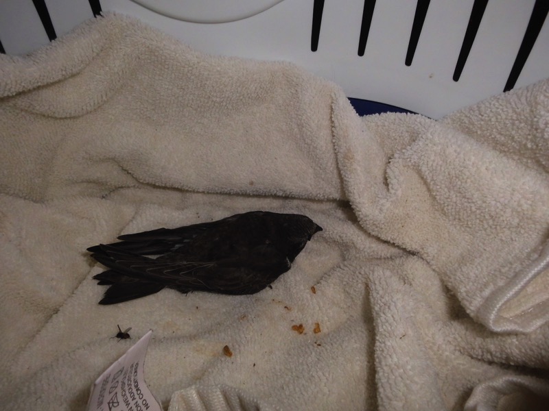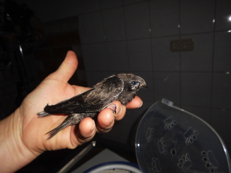 So hieß es für uns also ganz schnell alles Notwendige besorgen, um das kleine Kerlchen zu päppeln, als der Anruf kam. Alle halbe Stunde muss gefüttert werden. Und so ein kleiner Mauersegler ist nicht so bereitwillig bei der Nahrungsaufnahme wie ein Katzenjunges - oder auch unser Eichhörnchen Hugo, das wir vor kurzem aufzogen. Das Vogeljunge sperrt sich ziemlich. Es ist also mühselig, ein paar Tropfen Spezialnahrung oder gar Insekten zuzuführen.