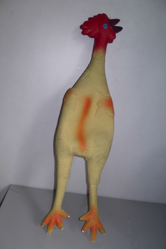 S3390003Ein Paket mit besonderem Inhalt traf bei uns ein: quietschende Gummihühnchen.