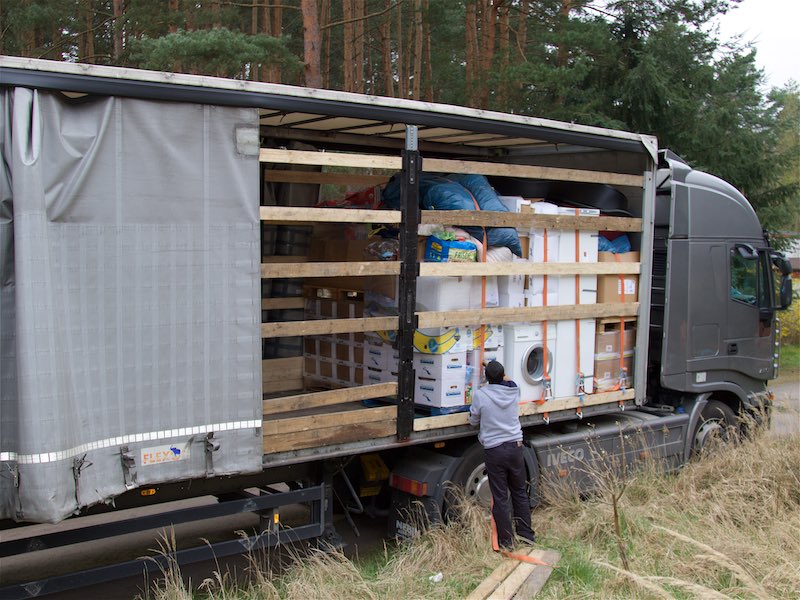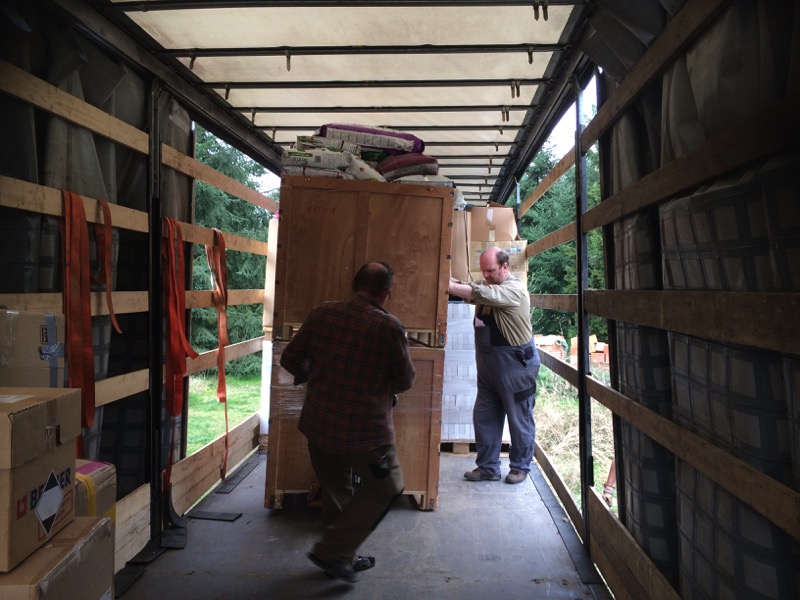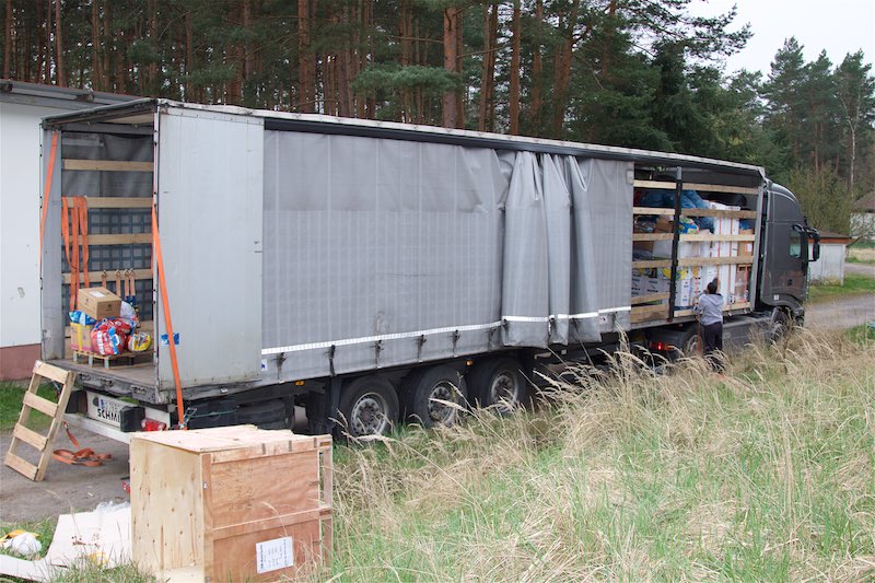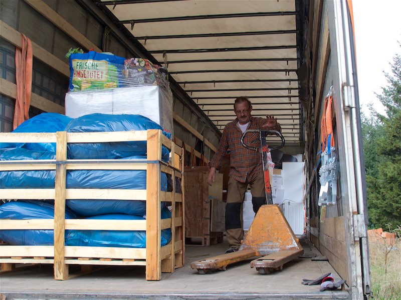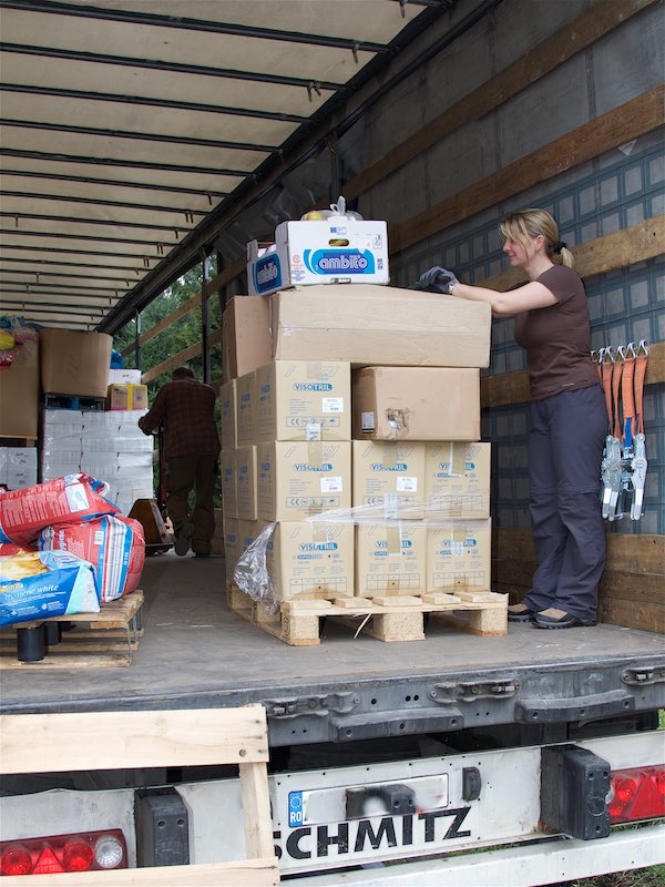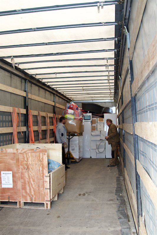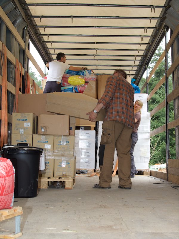 lkw 48Während unsere Helfer, die den LKW beladen haben, versuchen, ihre gezerrten Muskeln, krummen Rücken und schmerzenden Gelenke wieder einzurenken, sitzt der LKW-Fahrer hinter dem Steuer auf dem langen Weg nach Rumänien. Er wird wohl 3-4 Tage brauchen, bis er in der SMEURA ankommt.