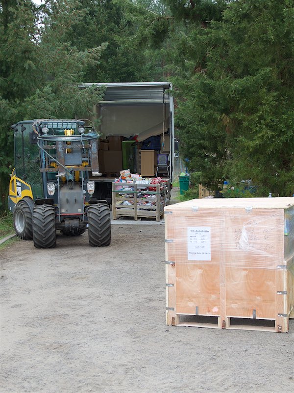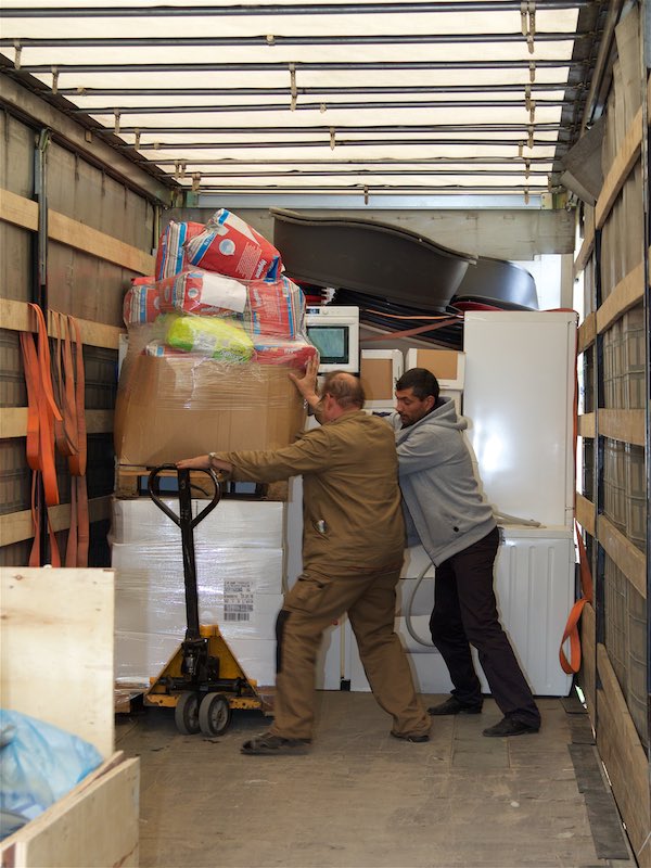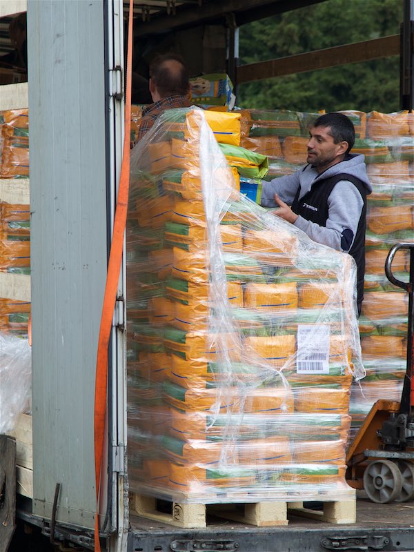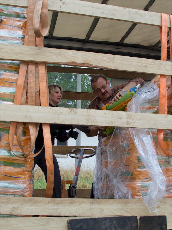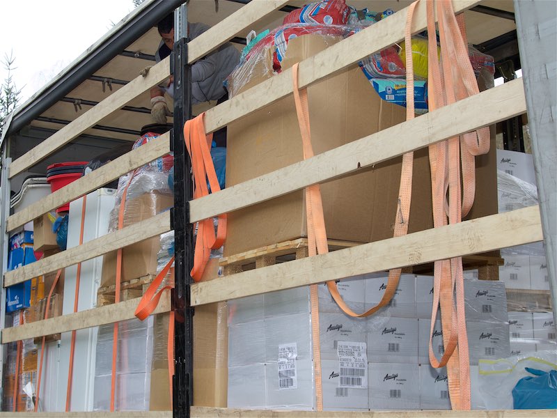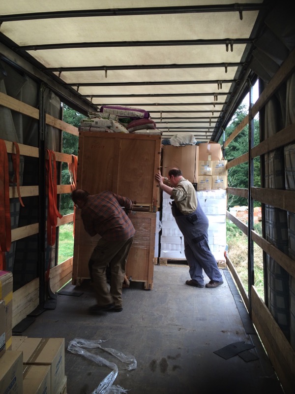 lkw 48Während unsere Helfer, die den LKW beladen haben, versuchen, ihre gezerrten Muskeln, krummen Rücken und schmerzenden Gelenke wieder einzurenken, sitzt der LKW-Fahrer hinter dem Steuer auf dem langen Weg nach Rumänien. Er wird wohl 3-4 Tage brauchen, bis er in der SMEURA ankommt.